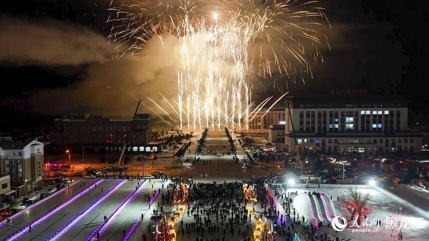暮色降临,金祖山下篝火燃起。游客们围聚成圈,跟随欢乐的节拍舞动,跃动的火光映照着一张张笑脸,驱散了凛冽寒意。夜空中,璀璨烟花次第绽放,如繁星洒落。缤纷光影之下,游人如织,欢声笑语,将冰雪世界的夜晚推向温暖的高潮。冰雪金林,正以它火热的方式,拥抱八方来客。